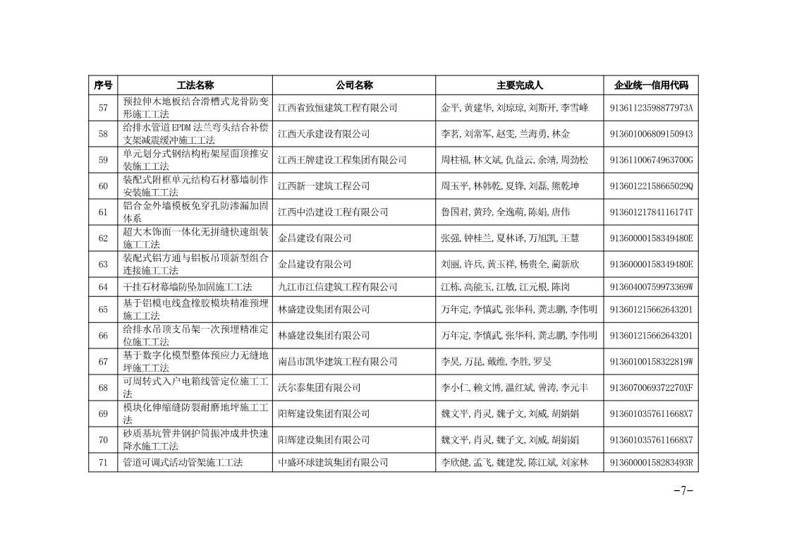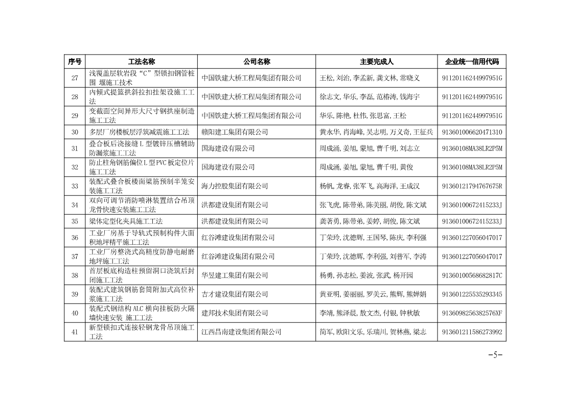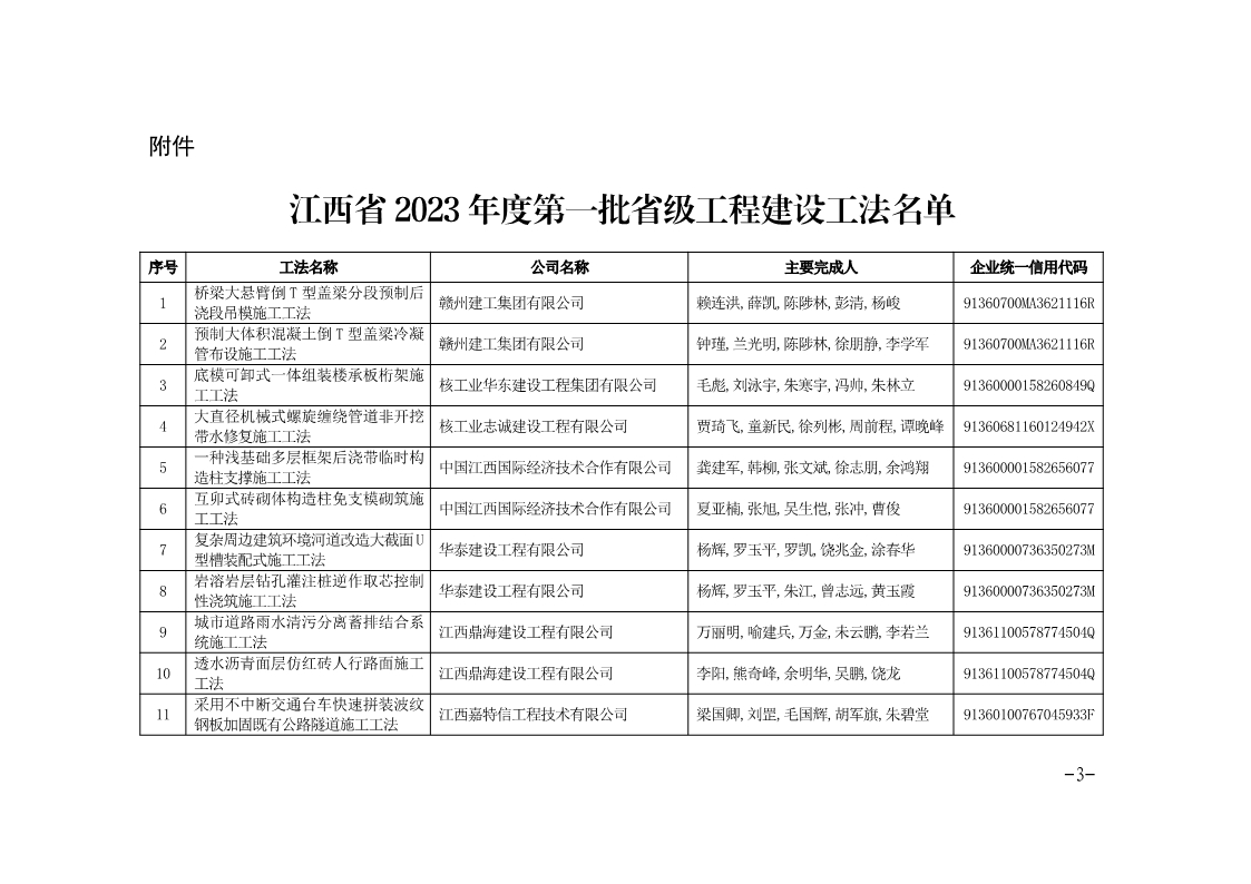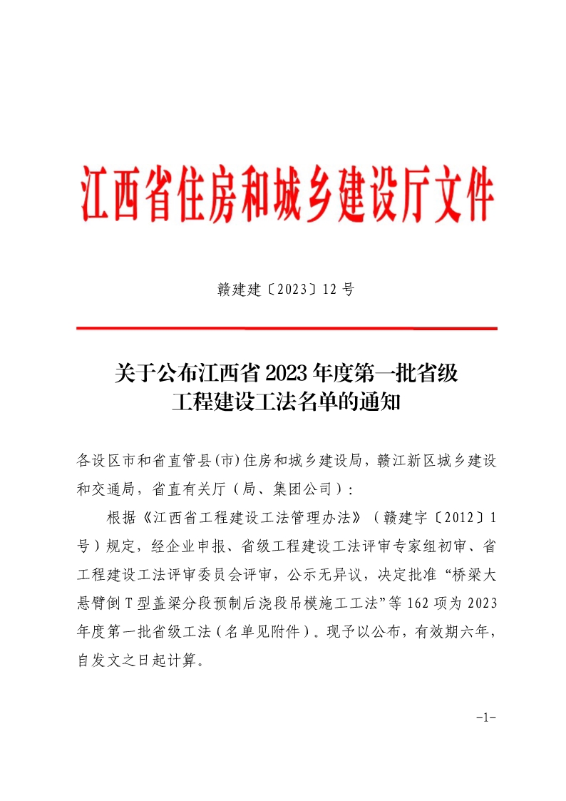 关于公布江西省2023年度第一批省级 工程建设工法名单的通知