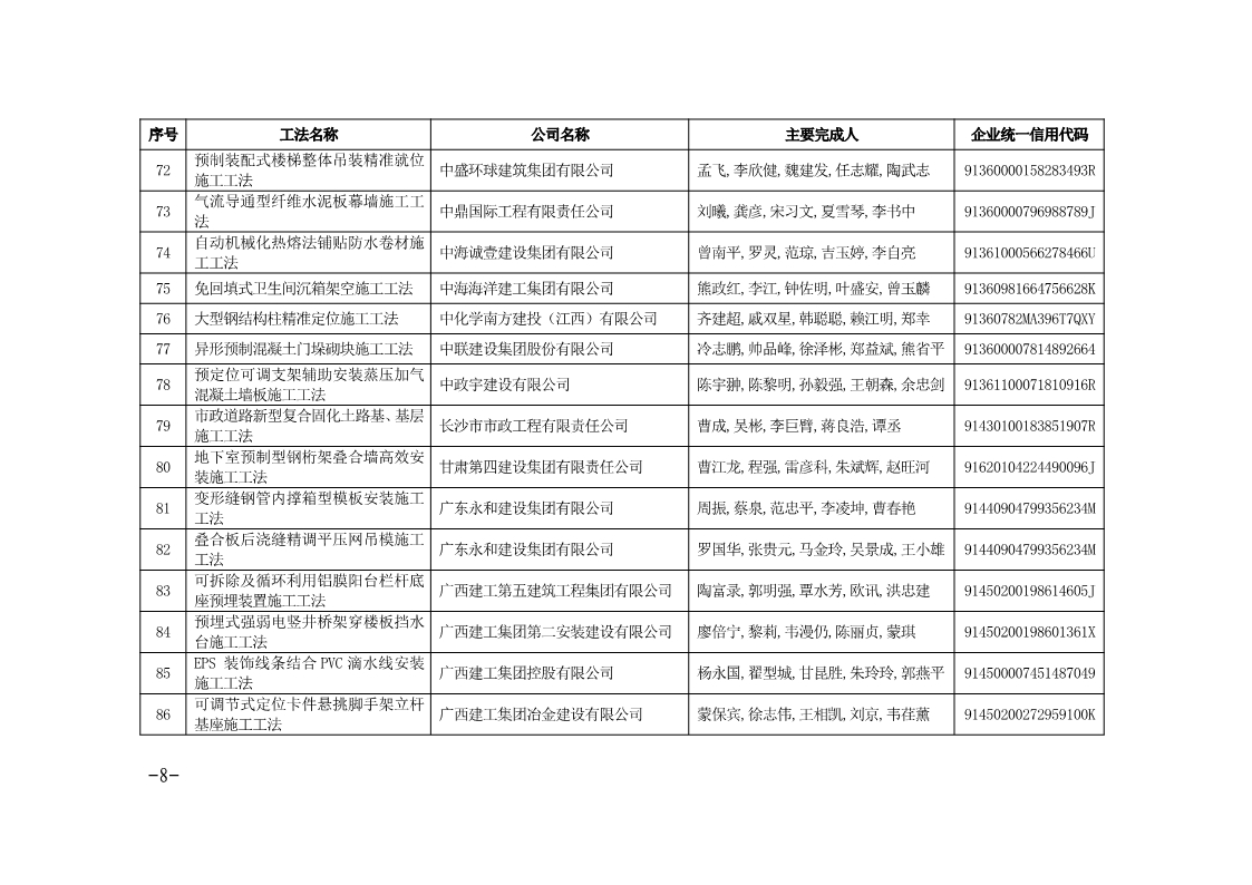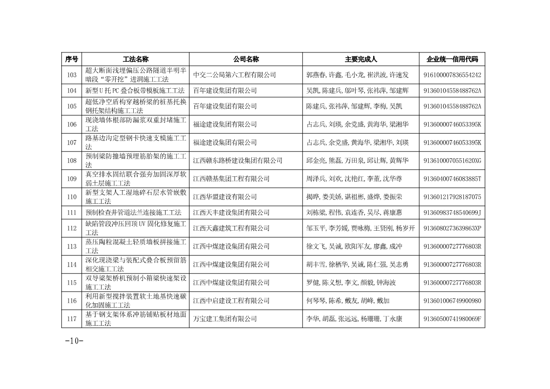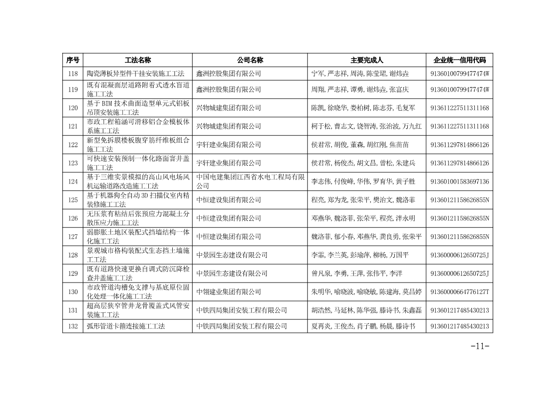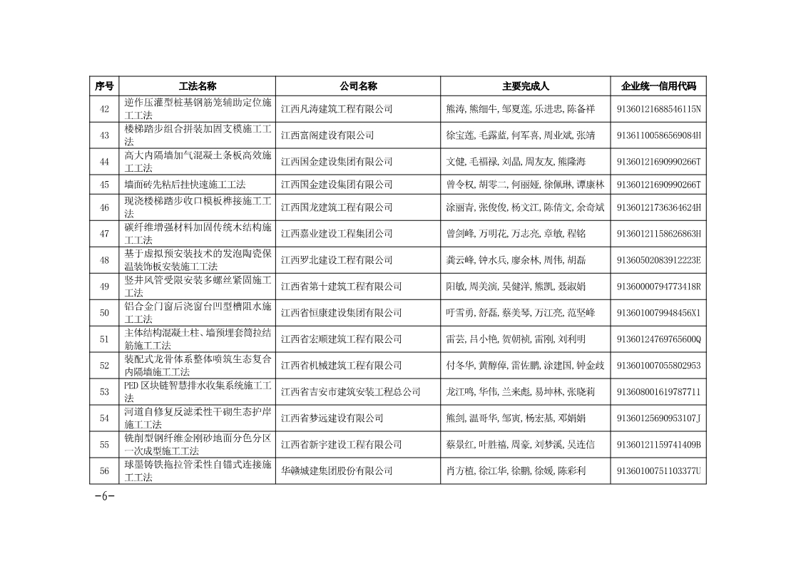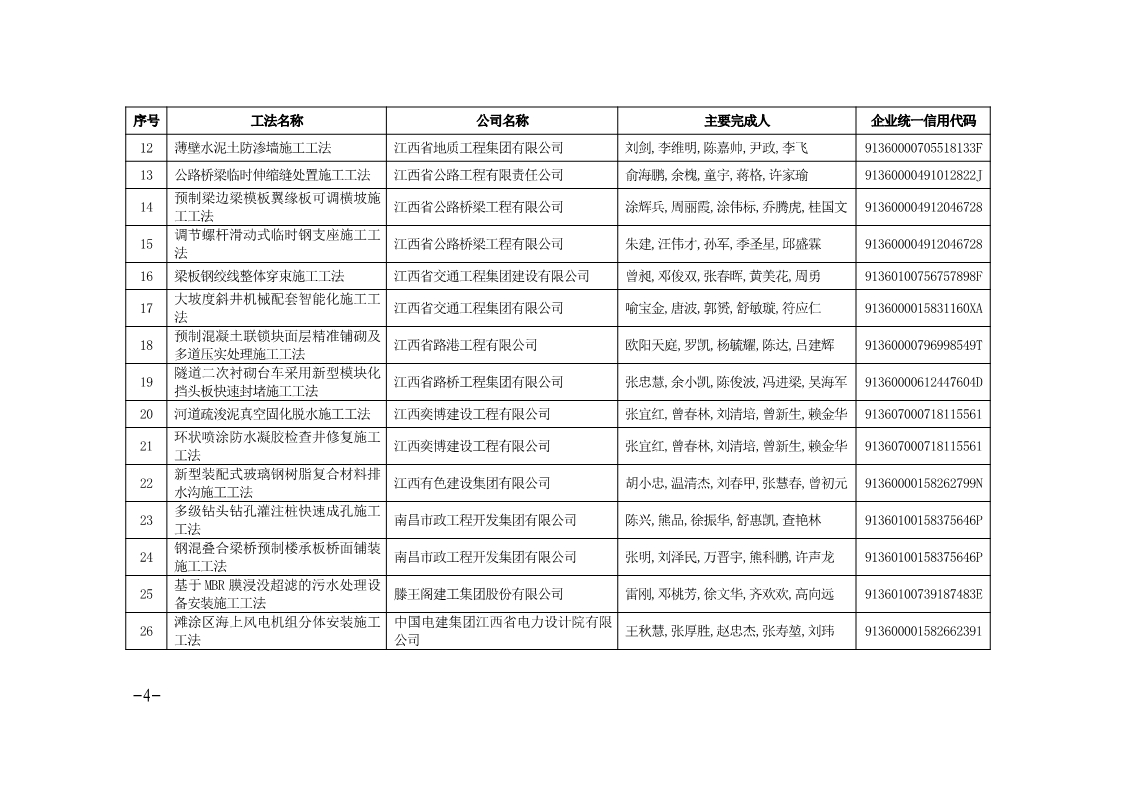 关于公布江西省2023年度第一批省级 工程建设工法名单的通知